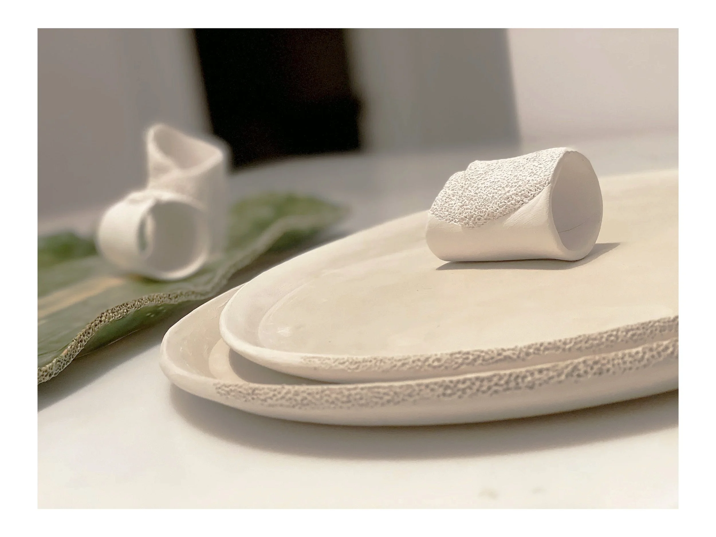 With STUDIOAMJ, Angela is excited to bring her practice in clay together with her passion for art and elegant decor and tablescapes. Porcelain is her preferred choice of clay for its compositional qualities, firing temperature and water absorption, each of which influence the material’s strength, translucency, and suitability for different uses. Rendered results are fine, durable, and elegant. Larger sculptural pieces are made with stoneware.